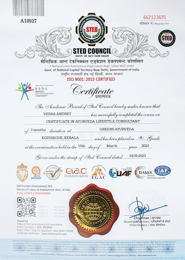 Certification in the International Yoga Federation at the level: Yogacharya – Grand Master.